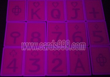 - UV-gemarkeerde kaarten en IR-gemarkeerde kaarten zijn verkrijgbaar. Ze zijn uniek om hun eigen speciale contactlenzen. Het betekent UV-gemarkeerde kaarten kunnen niet worden gedetecteerd door IR contactlenzen, tegelijkertijd, kan IR-gemarkeerde kaart niet worden gedetecteerd door UV-contactlenzen. UV-gemarkeerde kaarten kunnen alleen worden ontdekt door de speler die het dragen van de UV-contactlenzen bij diverse licht waaronder de spaarlampen.